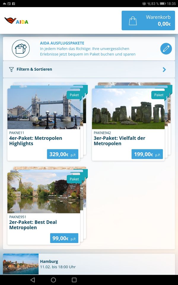 Seit wann gibt es überhaupt diese Paketangebote? Kann ich hoffen, dass auch Ausflüge aus der 2.Woche dazu kommen? Endet das Angebot irgendwann? Kann man die Ausflüge später auch noch tauschen? Ich habe es nur zufällig in "MyAIDA" entdeckt.