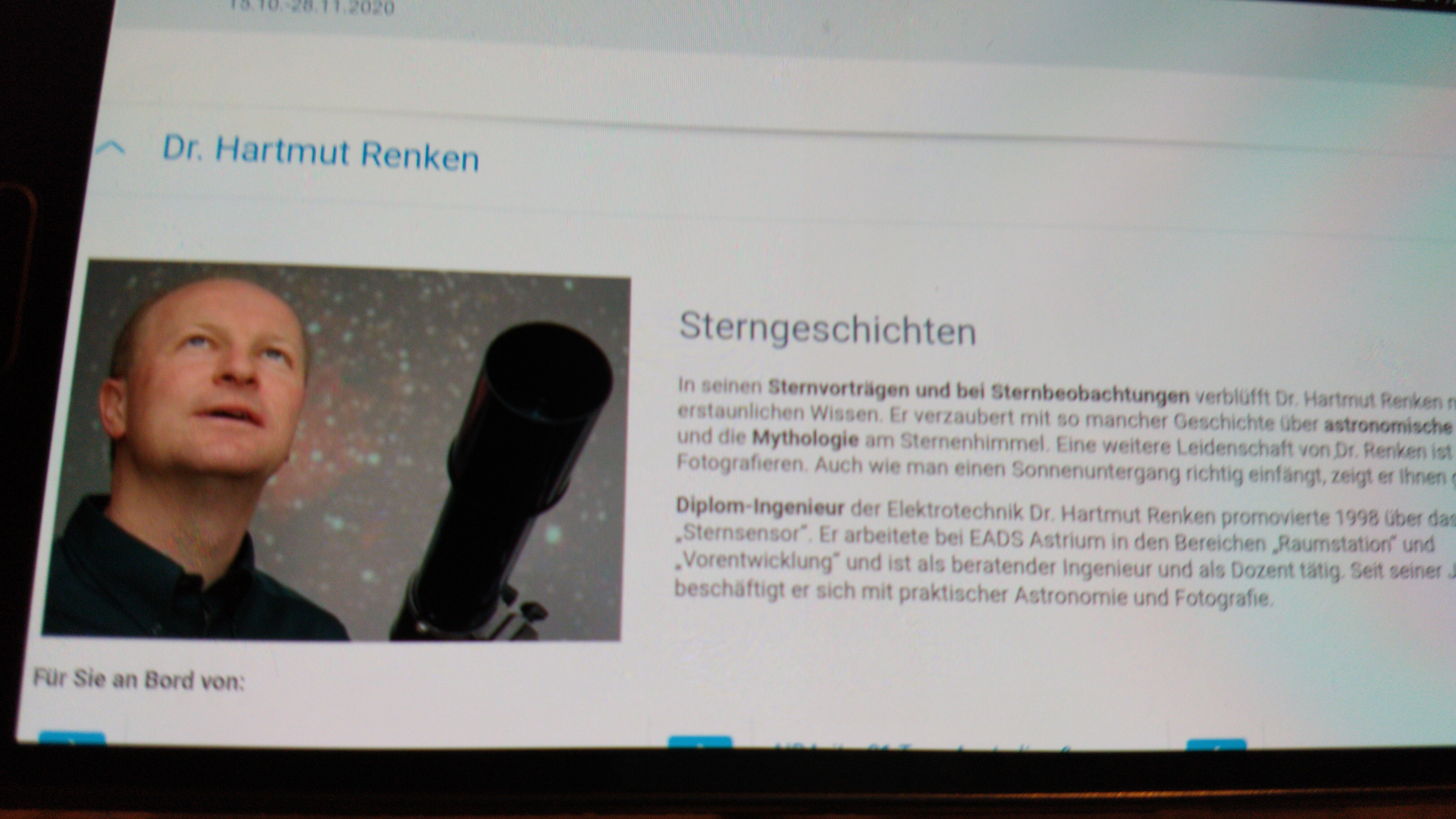 Ja, er ist ein super Fachlektor. Wir sind schon beim letzten mal "im hohen Norden" mit ihm gefahren und seine Vorträge zum Sternenhimmel haben mir gut gefallen.