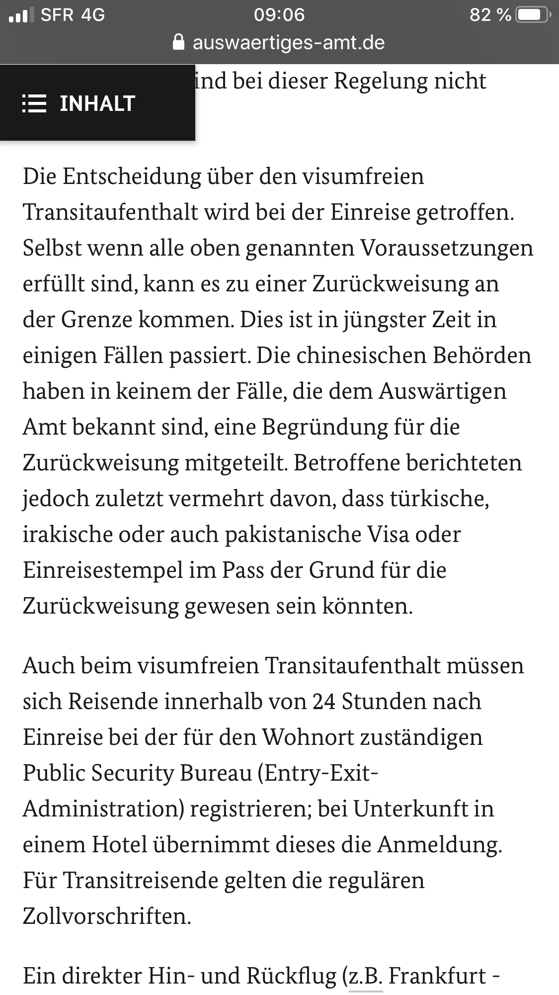 Ich war im November 2019 mit diesem Transitvisum in Peking, bin aus Deutschland über Peking International eingereist und ein paar Tage später über den gleichen Flughafen nach Singapur ausgereist, um die Quantum of the Seas zu besteigen.Was soll ich sagen; ich habe mir vor der Reise überhaupt keine Gedanken über etwaige Probleme mit diesem Transitvisum gemacht, bis auf ca 2 Wochen davor. Da erschienen auf einmal Berichte von Kreuzfahrern, die abgelehnt wurden, angeblich weil sie türkische Stempel im Pass hatten. Wer von den Deutschen hat keinen?.....Ich habe bei mir einen Antalya Stempel gefunden, aus 2014, und hatte dann auch die totale Panik. Stundenlang das 10 seitige Visumformular ausgefüllt, überlegt Einreichen oder nicht (das wäre zu dem Zeitpunkt nur noch per Express möglich) nächtelang nicht geschlafen...dann habe ich mich entschlossen, mich dem Schicksal zu ergeben, que sera sera.....Im übrigen, angeregt durch den Kommentar von @el capitano, dass man auch mit Visum abgelehnt werden kann, wenn die Grenzbeamten anders entscheiden (Danke dafür, el-capitano.....).