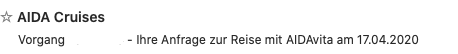 So sah der Betreff der Antwort von AIDA auf unser Schreiben aus. Und im Text dann diverse Bausteine, die sich alle auf Asien bezogen.