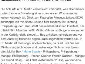 (Kleinbusse) Beim Kreisverkehr am Maho Market dann aussteigen. Dort auch wieder einsteigen. Wenn Ihr aus Versehen weiterfahrt ist das auch kein Problem. Dann kommt Ihr am Mullet Bay raus. (schöner Strand) Zu Fuß sind das dann maximal 10 Minuten zurück zum Maho Beach. Es ist nicht weit, Ihr fahrt mit Einheimischen und hört karibische Musik.