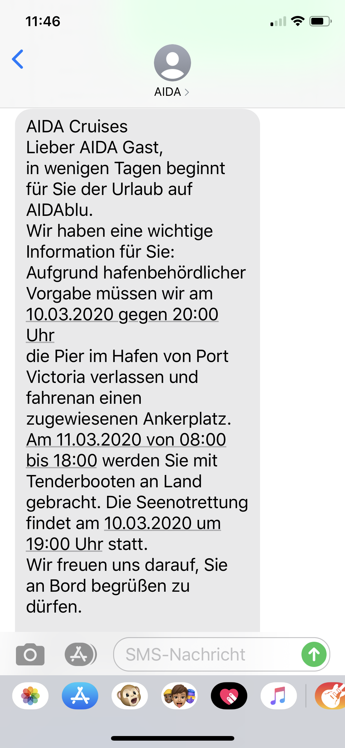 Ja, sind auch scho hier. Haben aber Dienstag das Problem, dass wir erst gegen 22 Uhr auf dem Schiff sein wollten. Müssen nun schon den ersten Tag umplanen. 😟