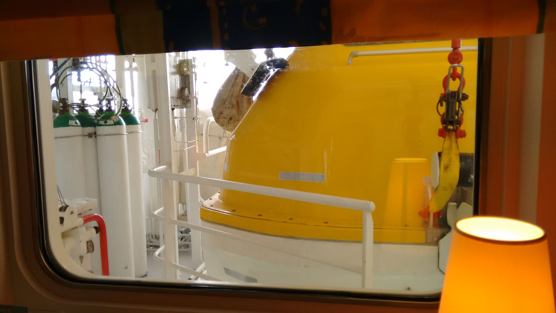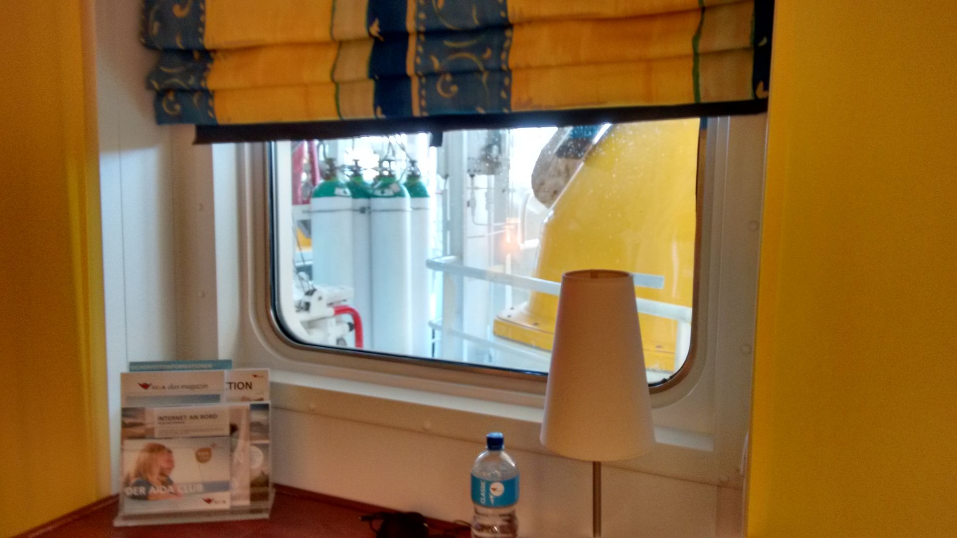 ), man sieht aber rechts oben ein Stück Himmel und links unten das Wasser bzw. ein Stück Land (also Panoramablick wars definitiv nicht, hat aber gereicht für den kurzen Wetter-Check und für Tageslicht in der Kabine
