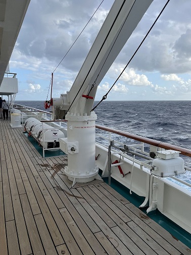 Achja, der Bereich auf dem Saturn-Deck Kabine 4607 bis 4639 ist der bordeigene Quarantänebereich, den man nicht betreten darf bzw. der auch abgesperrt ist. Von der Phoenix-Bar aus achtern kann man durch die Tür schauen und sieht vor den Kabinen kleine Tische stehen..