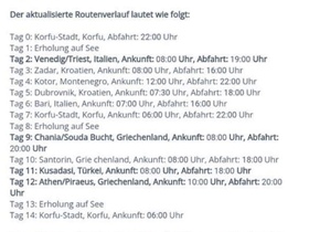 Die Reise startet und endet in Korfu. Ein Aufstieg in Triest würde für dich eine Verkürzung der Reise bedeuten bei gleichem Preis.