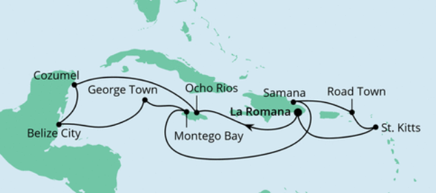 Mittelamerika (Panama, Costa Rica , Kolumbien) musste letzten Winter wegen Montego Bay abgesagt und umgeroutet werden. Jamaika hat erst im Januar Passagierwechsel erlaubt, weshalb z.b. Marella cruises (britische Reederei) so lange die Reisen im November, Dezember und Januar absagen musste, bis Mitte Januar die erste Tour starten durfte. Aida hat sich dagegen entschieden wie Marella zu hoffen, dass Jamaika einlenkt und den Starthafen für alle Reisen der Diva und Luna auf La Romana verlegt. Das Diva Programm mit Mexiko konnte noch mit Abstrichen gefahren werden, aber Mittelamerika von der Luna war von den Distanzen her nicht mehr sinnvoll, weil Costa Rica über 1700 km von La Romana entfernt ist, statt den 1100 ab Montego Bay. Sie hätten also einen weiteren Seetag gebraucht und Costa Rica nicht mehr anlaufen können. Die Route musste so oder so umgestellt werden. Dazu kamen dann noch Spekulationen, dass Panama und Kolumbien eventuell nicht öffnen und man hat gleich ohne sie geplant und auf die sichere Bank ABC Inseln und Antillen gesetzt. Kolumbien, Panama (und Costa Rica) konnten jedoch schon letzten Winter von den amerikanischen Reedereien angelaufen werden, weshalb sie diesen Winter auch bei AIDA und TUI wieder möglich sind.