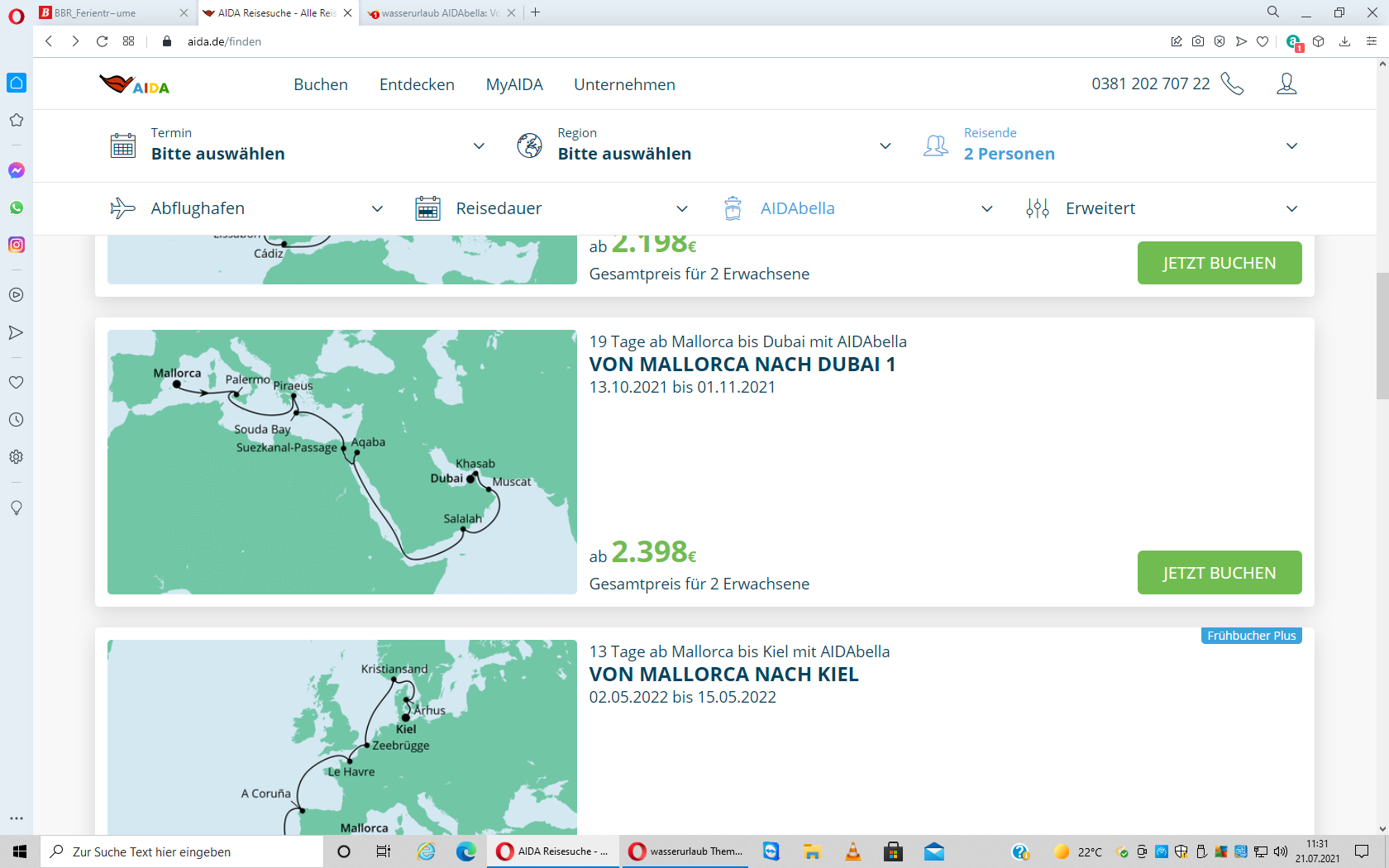 - RE: AIDAbella: Von Mallorca nach Dubai 1 | 19 Nächte | 13.10.2021 bis 01.11.2021 (Mittwoch, 13. Oktober 2021, 00:00 - Montag, 1. November 2021, 00:00)