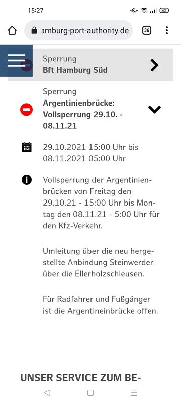 Umleitung über die neu hergestellte Anbindung Steinwerder über die Ellerholzschleusen.