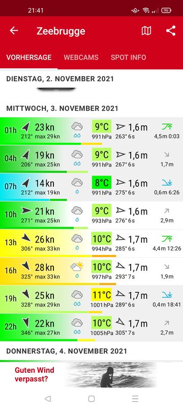 Puuh!! Wenn man die App Windfinder nicht vor sich hat. Ist es für mich schlecht zu erklären. Ja es wird Wind, viel Wind geben. Die Vorhersage ist nicht viel wert, es sind noch 6 Tage bis dahin, da kann sich noch viel tun, also keine Panik. Das Bier wird dir gut tun und dich beruhigen...