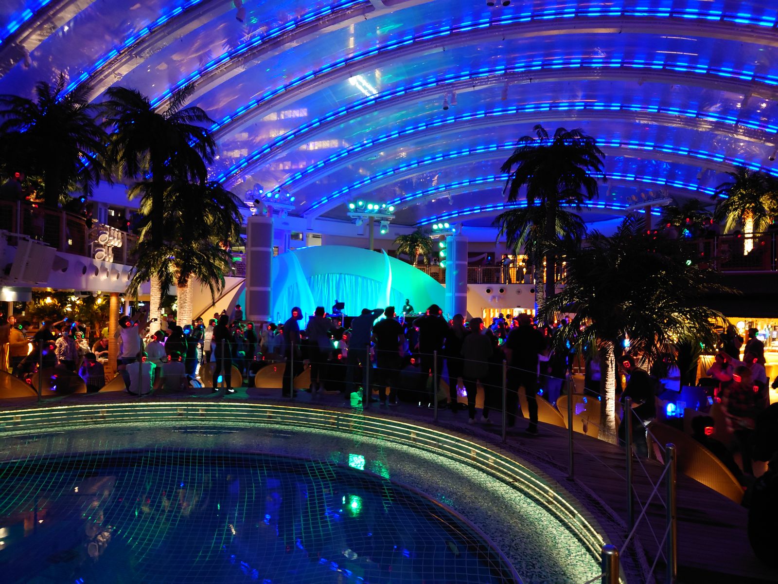 Läuft gerade. Ziemlich voll im Beach Club und viele Leute ohne Make. Bei den bekannten Schlagern wird kräftig mitgegrölt.