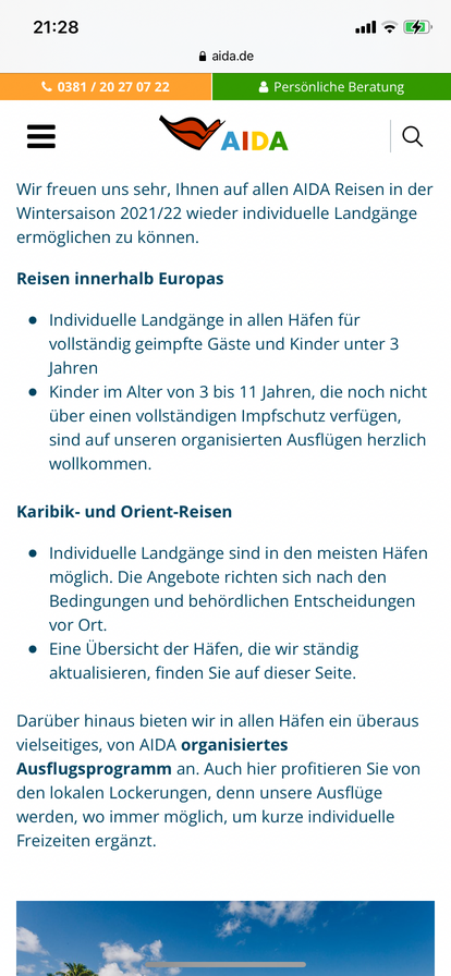 1. 🌴 AIDA Winterdeal: WLAN gratis auf Fernreisen