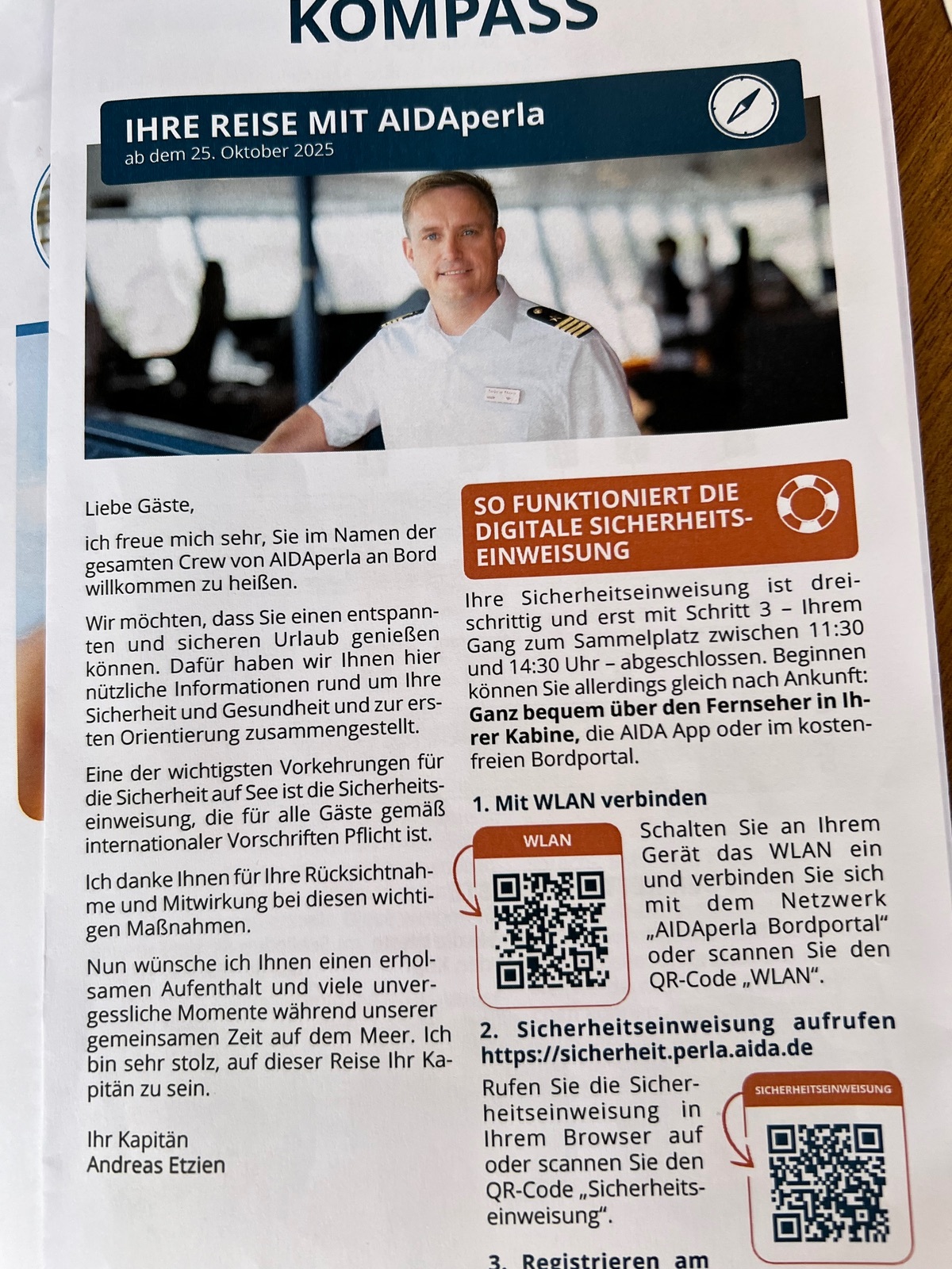 Das kann ich bestätigen, er ist der Kapitän der Kurzreise die gleich beginnt