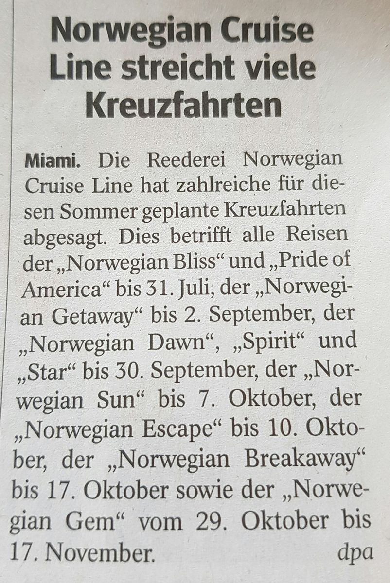 • RE: Wie NCL die Coronakrise überwinden will