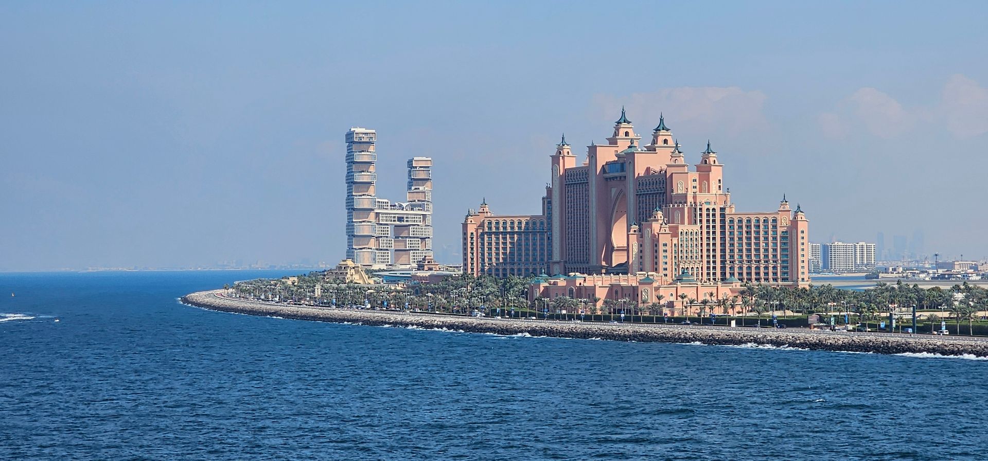 Anbei ein Blick auf die Skyline von Dubai von der Aida aus.
