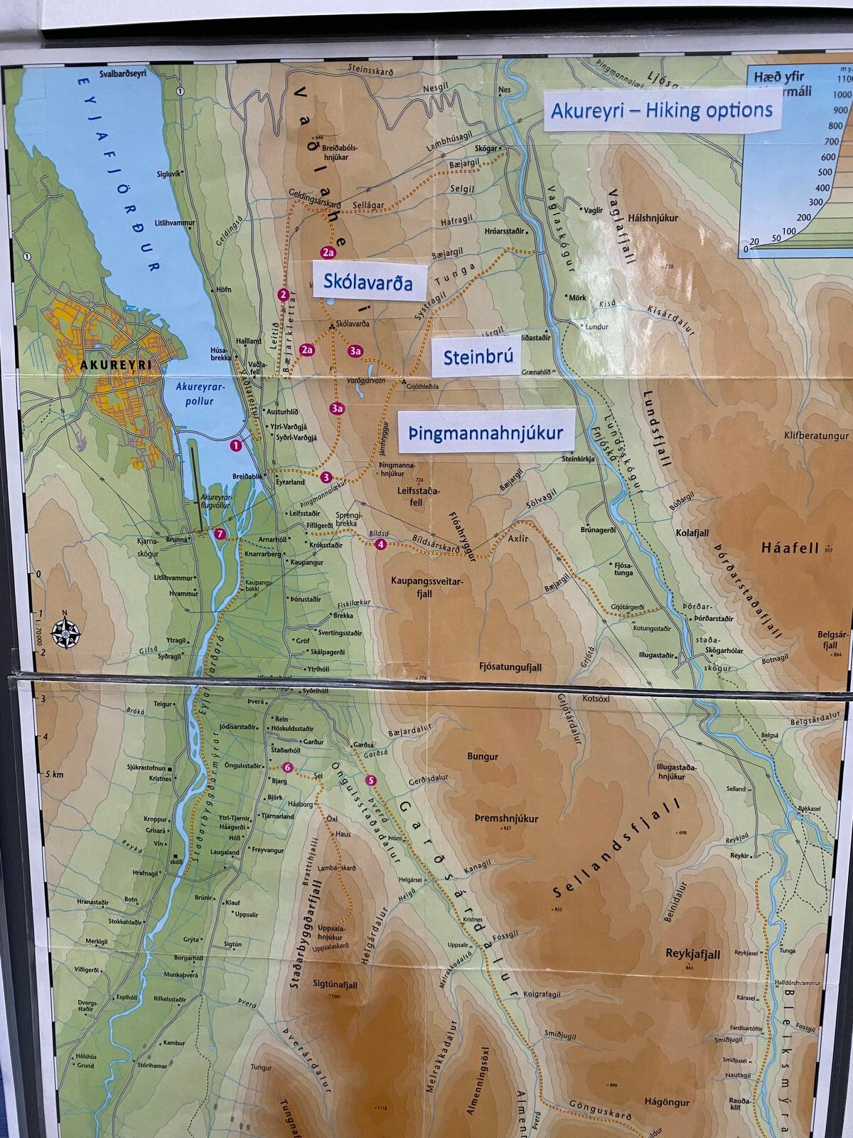 Da die Whale Watching Tour ausgefallen ist, haben wir nach einer Alternative gesucht und uns bei der Touri-Info in Hof nach Spaziergängen, Wanderungen in der Nähe der Forest Lagoon (Forestlagoon — Forest Lagoon) erkundigt, da wir hierfür Tickets für den Nachmittag hatten. Der sehr nette Mitarbeiter hat uns Skolavarda empfohlen. Wir sind dann mit dem kostenlosen Shuttle Bus (Hinweg ab Hof jeweils zur vollen Stunde, Rückweg ab Forest Lagoon jeweils um 3/4) erstmal zur Forest Lagoon gefahren. Dort haben wir uns dann erkundigt, ob wir uns zwingend an die Ticketzeit halten müssten, nein wir waren flexibel. Wir sind dann von der Forest Lagoon (auf der Karte bei 1) aus zuerst durch ein nettes Wäldchen spaziert. Im anschliessenden Wohngebiet mussten wir dann ein paar längere Meter auf Strassen zurück legen, bevor der eigentliche Wanderweg anfing. Dieser war sehr schön und bietet tolle Aussichten. Leider war das Wetter wie vorhergesagt echt nass, es hat in Strömen geregnet und so hat es uns dann irgendwann gereicht und wir sind umgedreht und haben die nassen Klamotten mit dem Thermalwasser der Forest Lagoon getauscht. Dies war wirklich herrlich warm, sehr entspannend. Die Forest Lagoon ist nicht wirklich gross aber idyllisch und es war auch nicht zu voll. Es gibt auch eine Textilsauna und ein Kaltwasserbecken und wir haben den Bananen-Himbeer-Smothie in der Poolbar ausprobiert, sehr lecker. Da könnte ich mich daran gewöhnen.