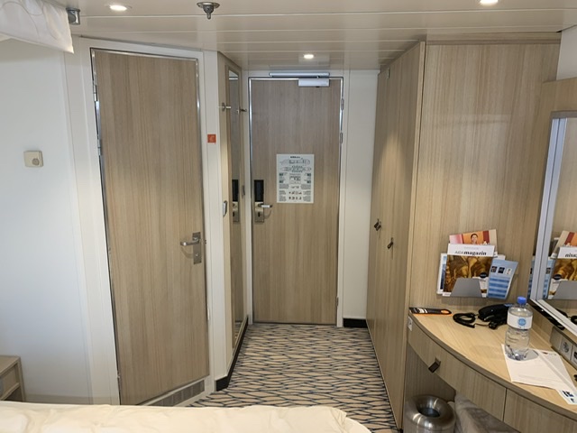 Was aber leider in keiner Weise geht, ist das Badezimmer 😡. Die Kabine war vorher eine Crewkabine und wurde als Gästekabine umgebaut. Das Badezimmer hat ca. 1,5 qm und damit ist es quasi nicht nutzbar (außer man möchte gleichzeitig Zähne putzen und auf Toilette). Ich habe keine Ahnung, wie einige Passagiere dieses Badezimmer nutzen sollen und denen bleibt dann nur noch die Lösung der öffentlichen Toiletten bzw. der Duschen im Spa-Bereich.