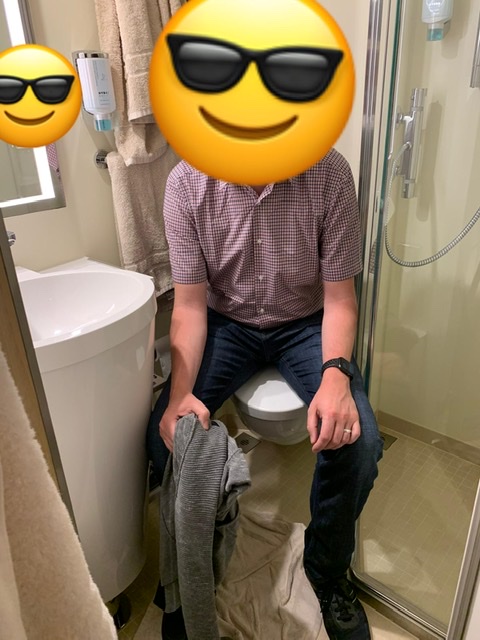 Was aber leider in keiner Weise geht, ist das Badezimmer 😡. Die Kabine war vorher eine Crewkabine und wurde als Gästekabine umgebaut. Das Badezimmer hat ca. 1,5 qm und damit ist es quasi nicht nutzbar (außer man möchte gleichzeitig Zähne putzen und auf Toilette). Ich habe keine Ahnung, wie einige Passagiere dieses Badezimmer nutzen sollen und denen bleibt dann nur noch die Lösung der öffentlichen Toiletten bzw. der Duschen im Spa-Bereich.