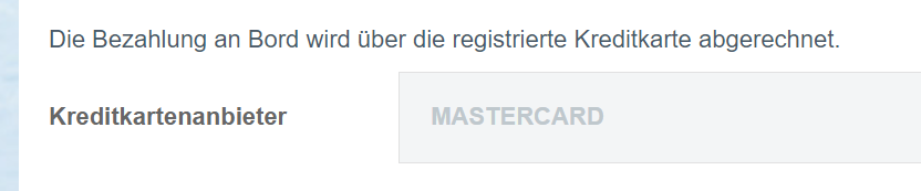 Bei der Hinterlegung eines Zahlungsmittels für die Bordrechnung hab ich mit VISA auch regelmäßig Probleme. Keine Ahnung, warum. An Bord funktioniert es dann einwandfrei.