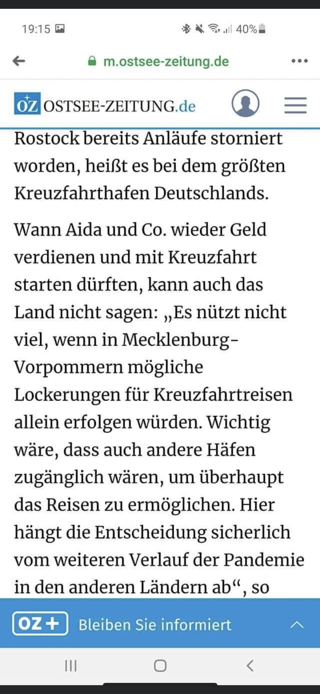 Überschrift zu einem Online-Artikel der Ostsee-Zeitung von vor ca. 2 Stunden.