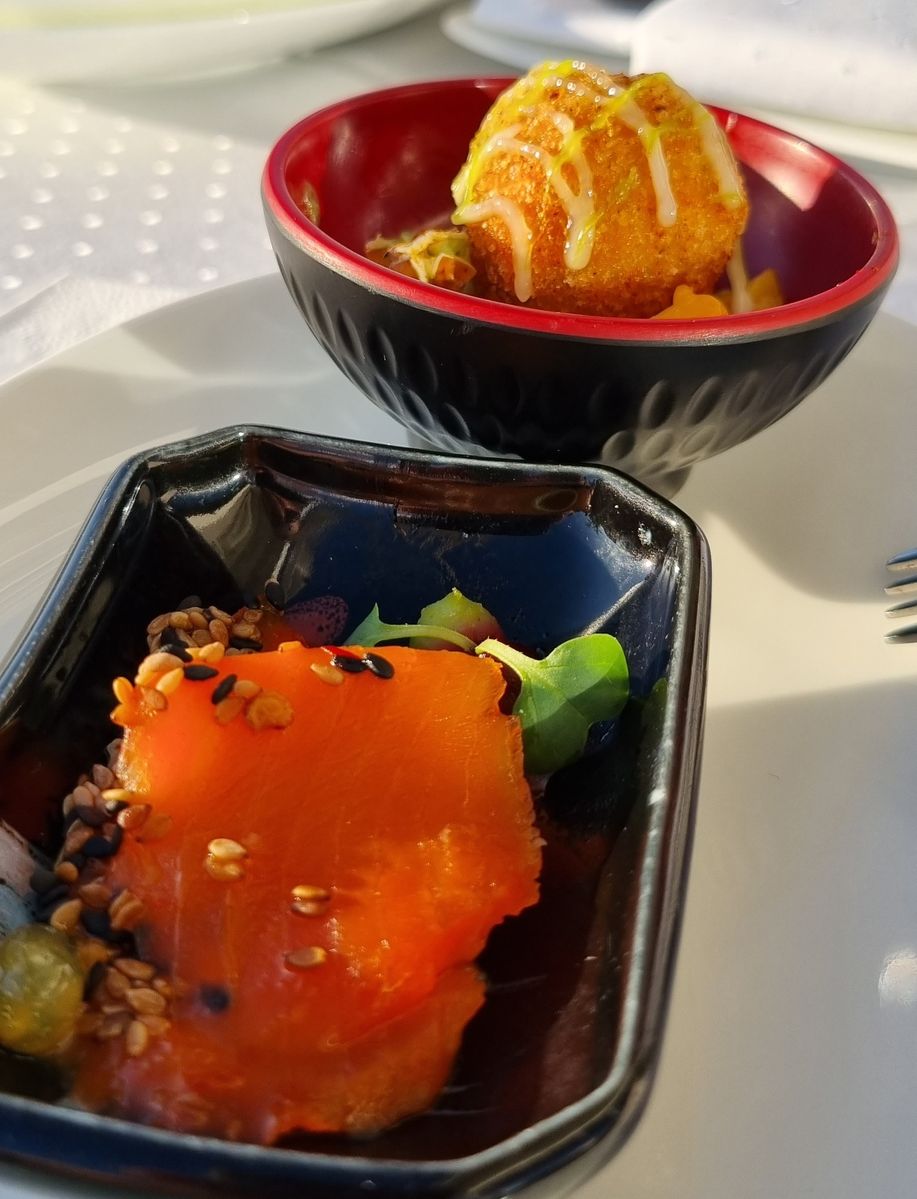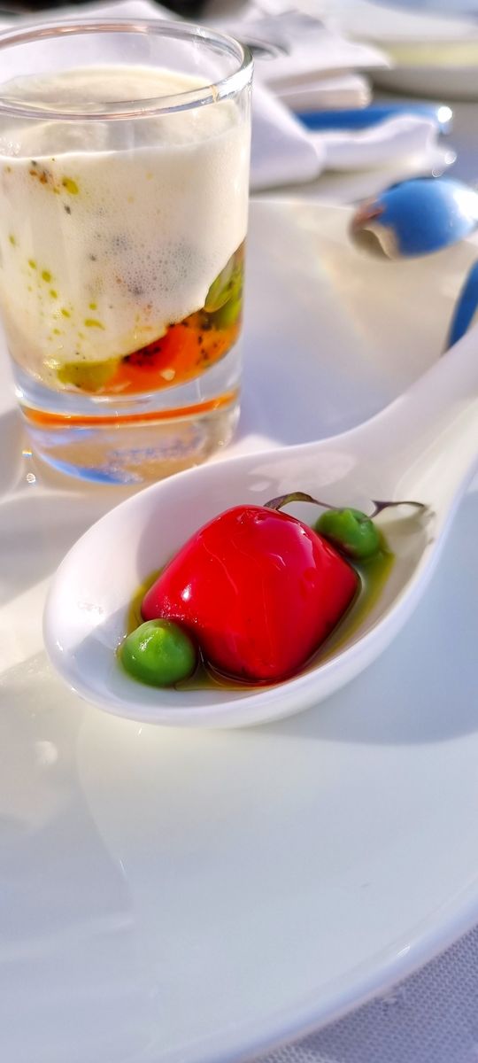 Rossini mal anders begann beim Auslaufen aus La Spezia mit ein paar wundervollen Kleinigkeiten auf der Terrasse vor der Vinothek, dazu gab es Champagner. Später wurde im Rossini ein 5-Gang-Menü gereicht. Mit 69 Euro pro Person mehr als fair bepreist.