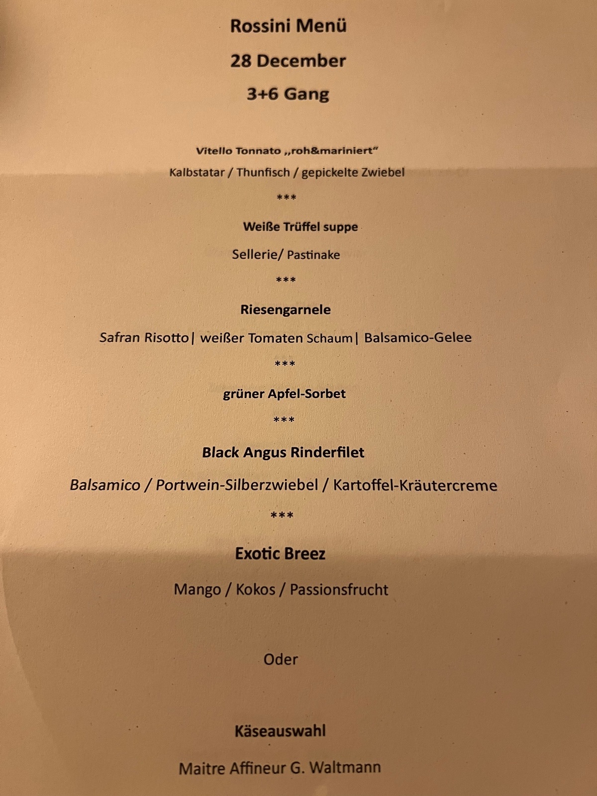 Mag sein, dass es im Rossini nur noch "Einheitsmenü" gibt. Wenn es mir super gut schmeckt geh ich auch in Zukunft wieder hin. Abgesehen davon, dass das Menü als Welcomedinner für lau war, finde ich die 39 angemessen. An Land wäre es um einiges teurer gewesen.