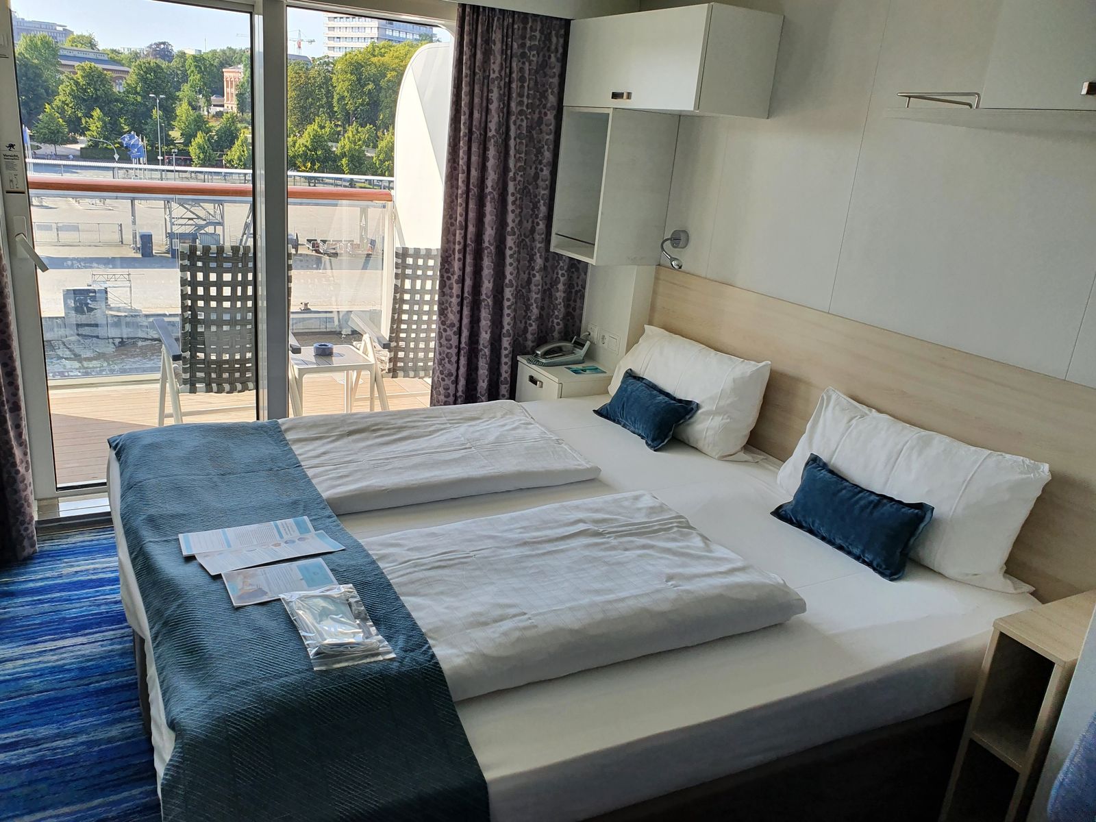 Die Kabine ist schön, in hellen Blautönen gehalten von der Ausstattung. Genug Stauraum, nur an den Kleiderstangen gibts nicht so viel Platz, bei Einer von den Zweien kann man nur kurze Sachen hin hängen weil sie im unteren Bereich des Schrankes angebracht ist.