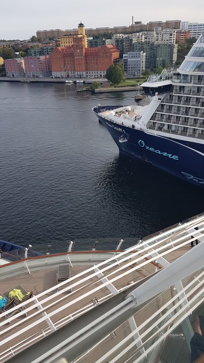 Und dann das Highlight, während die 1 in Stockholm am Pier festmachte, fuhren wir an ihr vorbei in den alten Hafen, drehten auf dem Teller und kamen längsseits auf, mit nur ganz wenig Abstand. Die Kapitäne hupten was das Zeug hielt, die Gäste riefen, winkten und pfiffen. Gefühlt konnten wir das Weiß in den Augen der Gäste der 1 sehen, so nah waren wir beieinander
