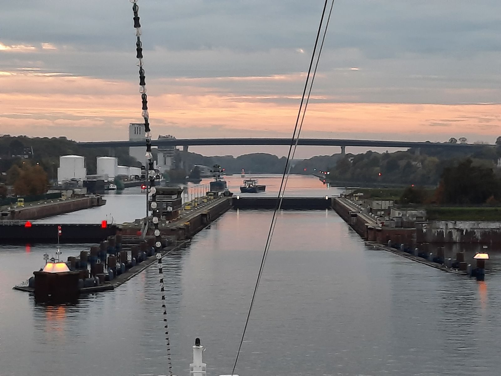 45 Min. in der Schleusenkammer das ist aber eine gute/kurze Zeit,weil vor euch keine weiteren Schiffe in der Schleusenkammer waren bzw.ausgelaufen sind