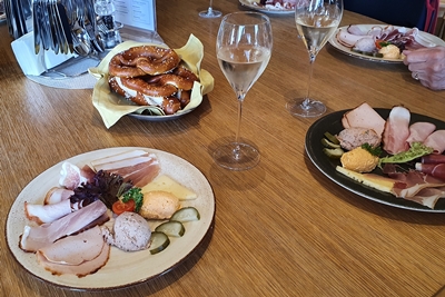 Also, bei uns gab's nicht nur ein Glas Champagner, es war eine richtige schöne Sause mit lecker Brotzeit in der Almhütte, mit HDin Katharina Jegg, EM Tobi Klaus und weiteren Crewmitgliedern.