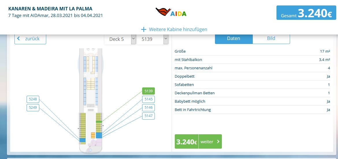 • RE: Kanaren Osterferien 21 mit Aida Mar - keine 4er Kabinen