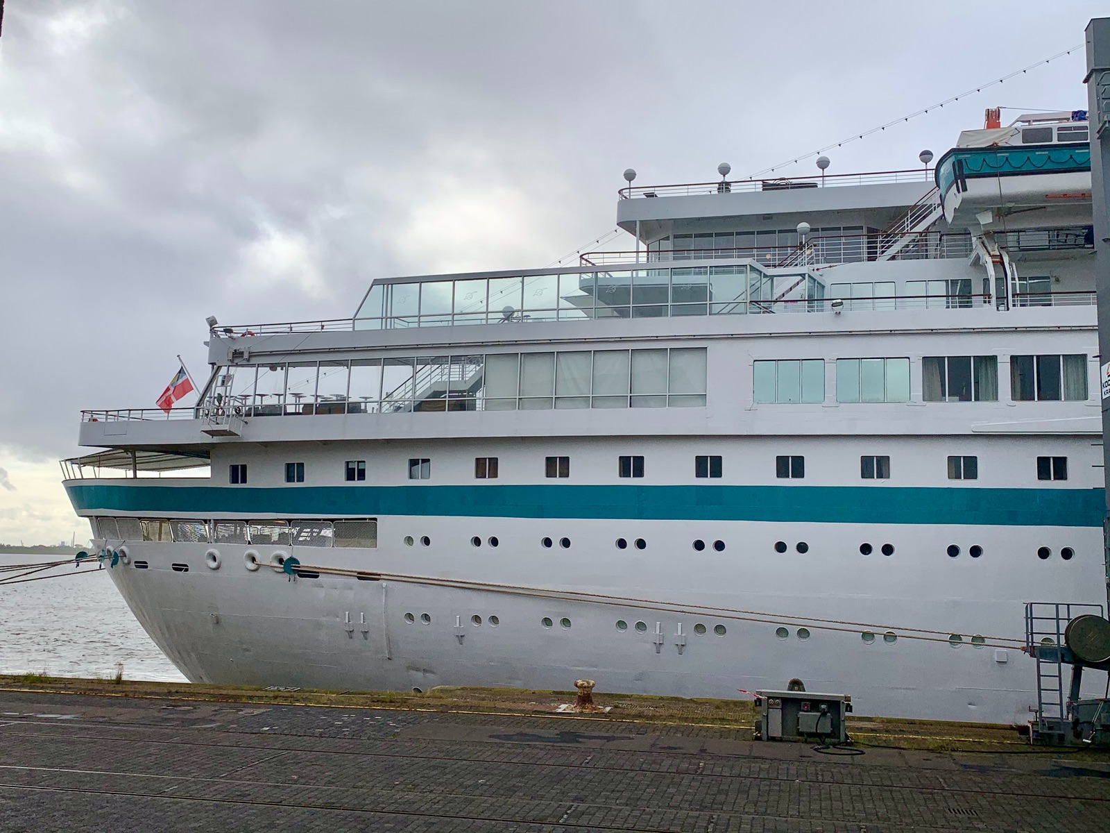 Gut das sie noch nicht zum Abdecker muß. Bis auf die Kabinen, war es ein schönes Schiff. Als Hotelschiff muss sicherlich an den Kabinen noch was gemacht werden.