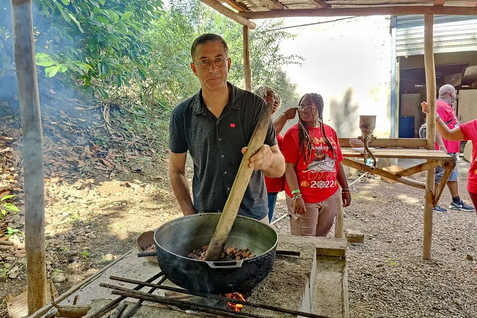 Dafür bezahlt, ein paar Stunden lang auf einer Kakao-Plantage arbeiten zu dürfen? Beim Hafenstopp mit der Carnival Celebration in Amber Cove in der