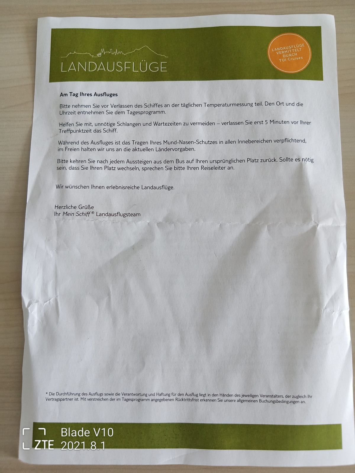 Meine Erfahrung von der Reise MS 6 vor zwei Wochen: