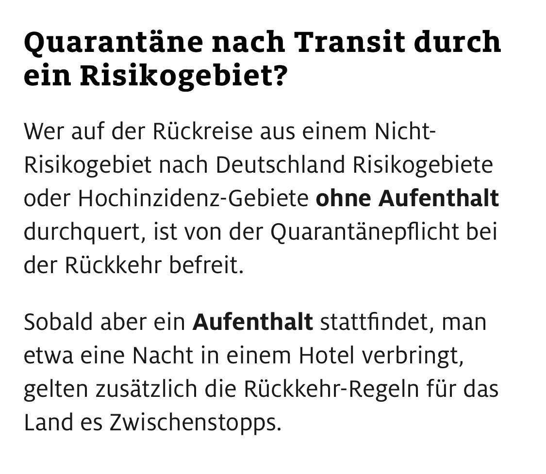 "lediglich durch ein Risikogebiet oder Hochinzidenzgebiet (nicht Virusvariantengebiet) durchgereist sind und dort kein Zwischenaufenthalt hatten,"