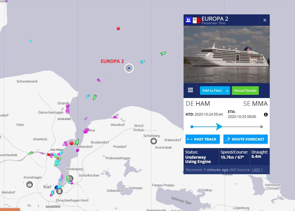 Auch so ein trauriges Thema. Vor ein paar Tagen noch trafen sich die Europa 2 und die Hanseatic Inspiration mitten im Kanal. Jetzt liegt letztere in Hamburg ohne Kurs und die MS Europa dreht ihre Kreise irgendwo in der Nähe von Helgoland.