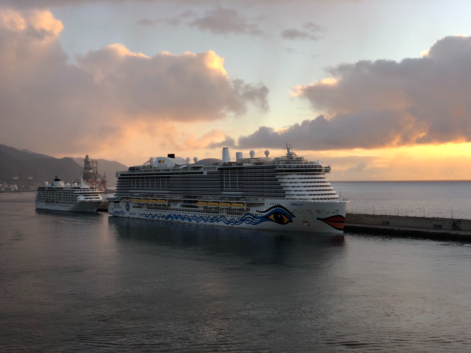 Sieht aber dunkel hinter den Bergen aus auf Teneriffa. Zwei mal AIDA- Perla und Nova ein mal Mein Schiff 2 zu sehen: