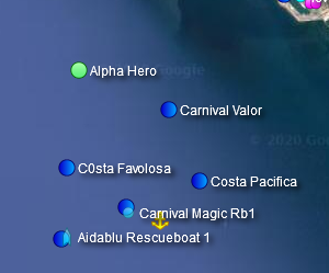 Die Bilder von Hafenratte (auch weiter oben, das Foto mit der Kaimauer) sind schön, aber auch traurig, momentan liegen in und um Civitaveccia Hafen folgende Schiffe auf Wartepositionen, hoffentlich wird es kein Schiffs-Friedhof, hoffen wir mal auf bessere Zeiten, die hoffentlich bald kommen, zuvor es zu spät ist...