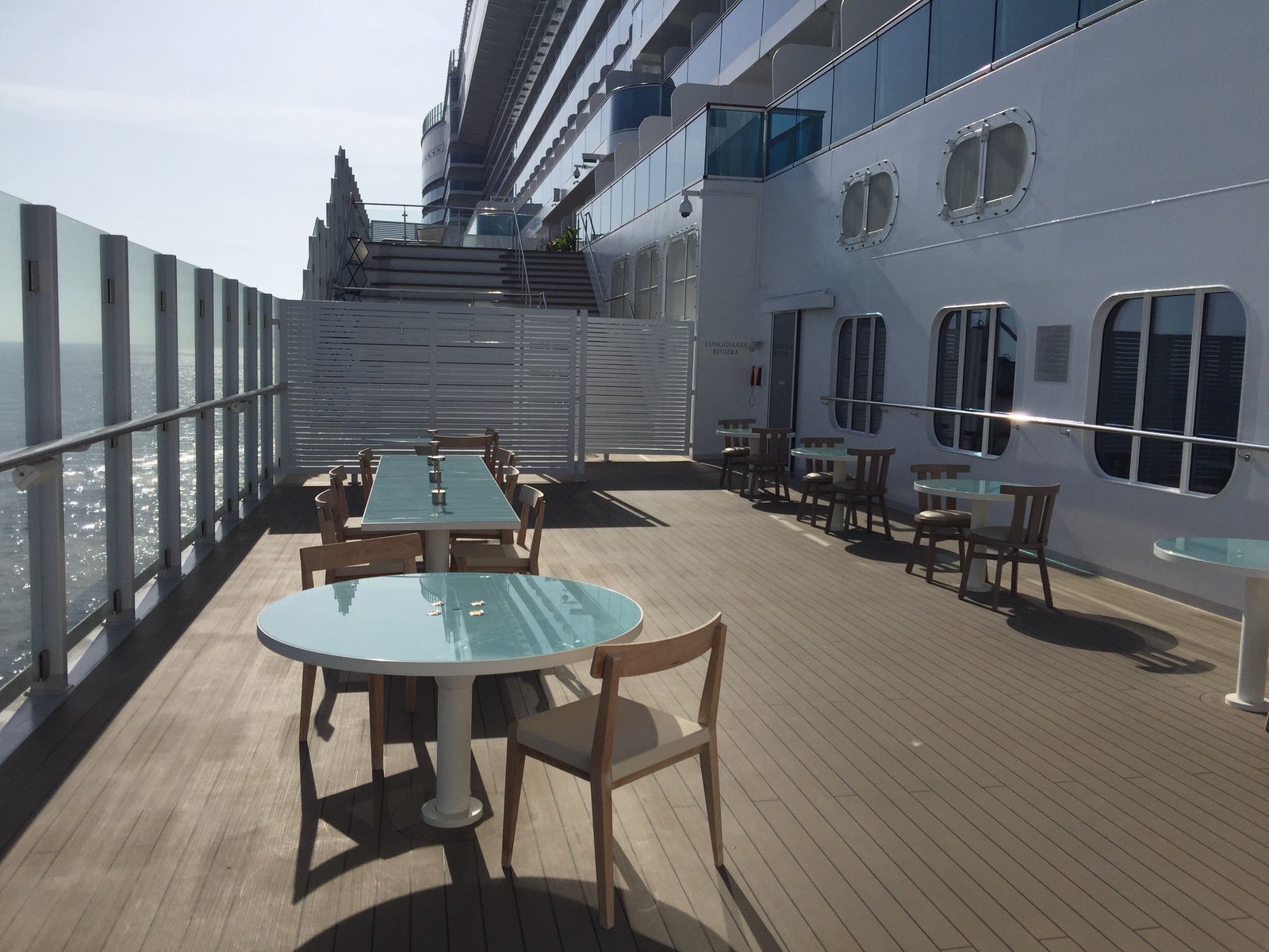 Wieder ein paar Bilder vom Schiff: Ein großer Vorteil vom Schiff: Die Möglichkeit auf Deck 8 und teilweise 7 außen um das ganze Schiff zu laufen und schön zu sitzen oder zu liegen.