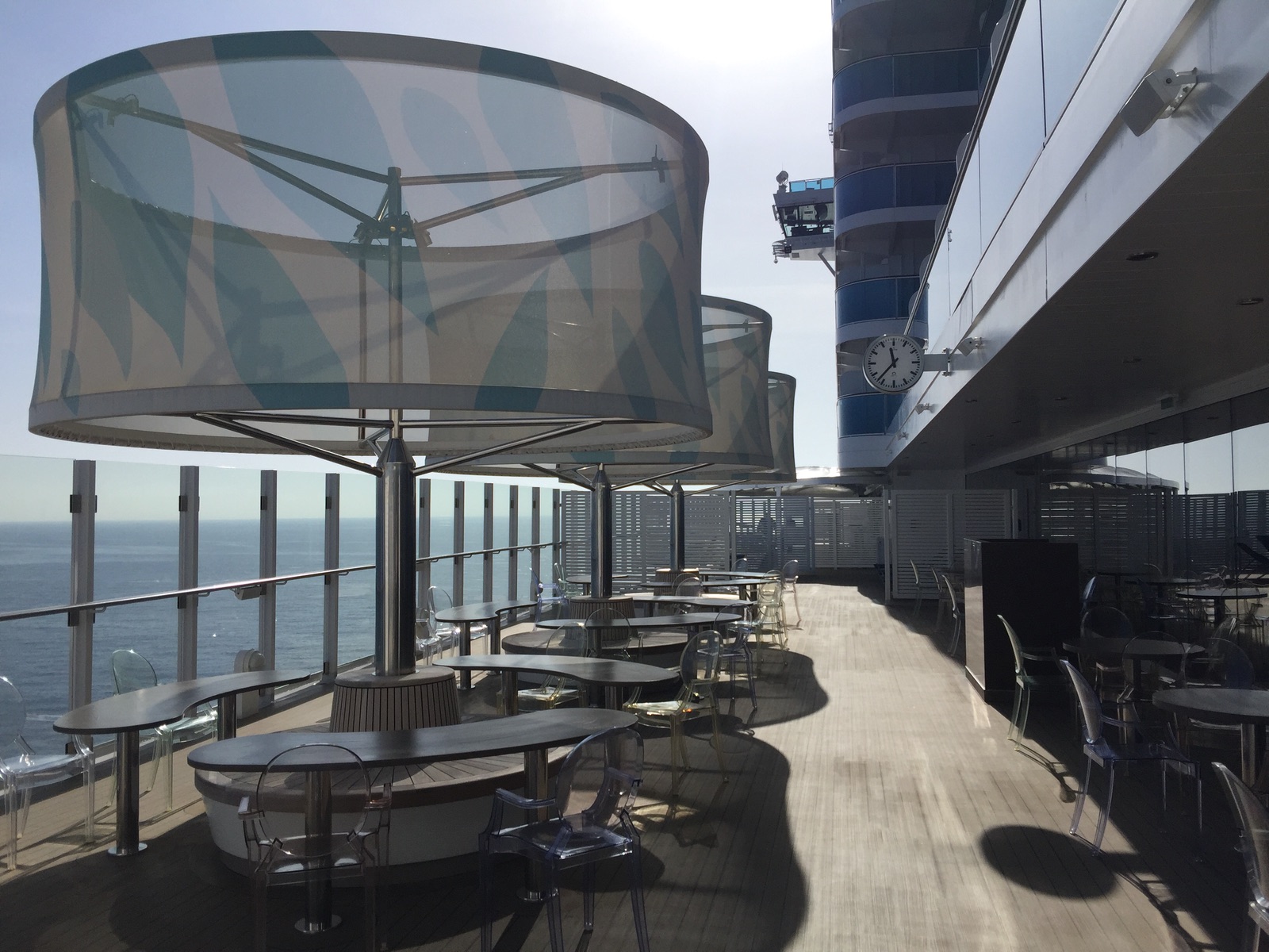 Wieder ein paar Bilder vom Schiff: Ein großer Vorteil vom Schiff: Die Möglichkeit auf Deck 8 und teilweise 7 außen um das ganze Schiff zu laufen und schön zu sitzen oder zu liegen.