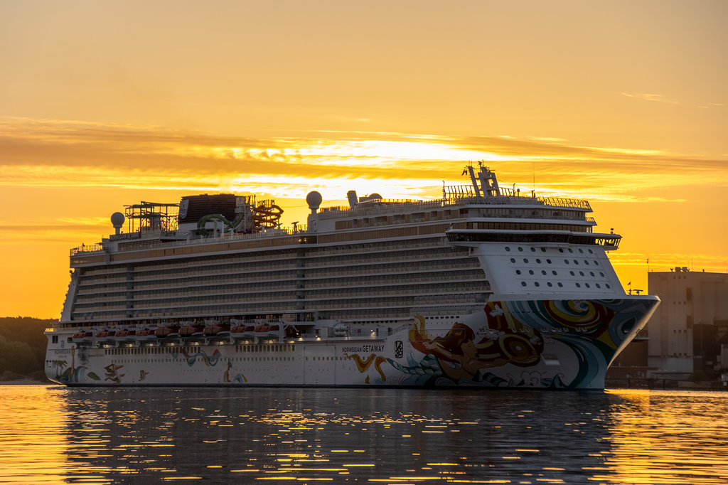 Premiere heute morgen, NCL kam erstmals überhaupt mit einem Schiff nach Kiel. Hier die Getaway um 05:15 Uhr einlaufend.