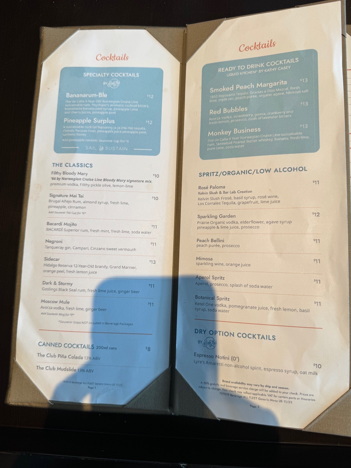 In manchen US Häfen wird noch Tax fällig für Getränke. Das wird extra berechnet.