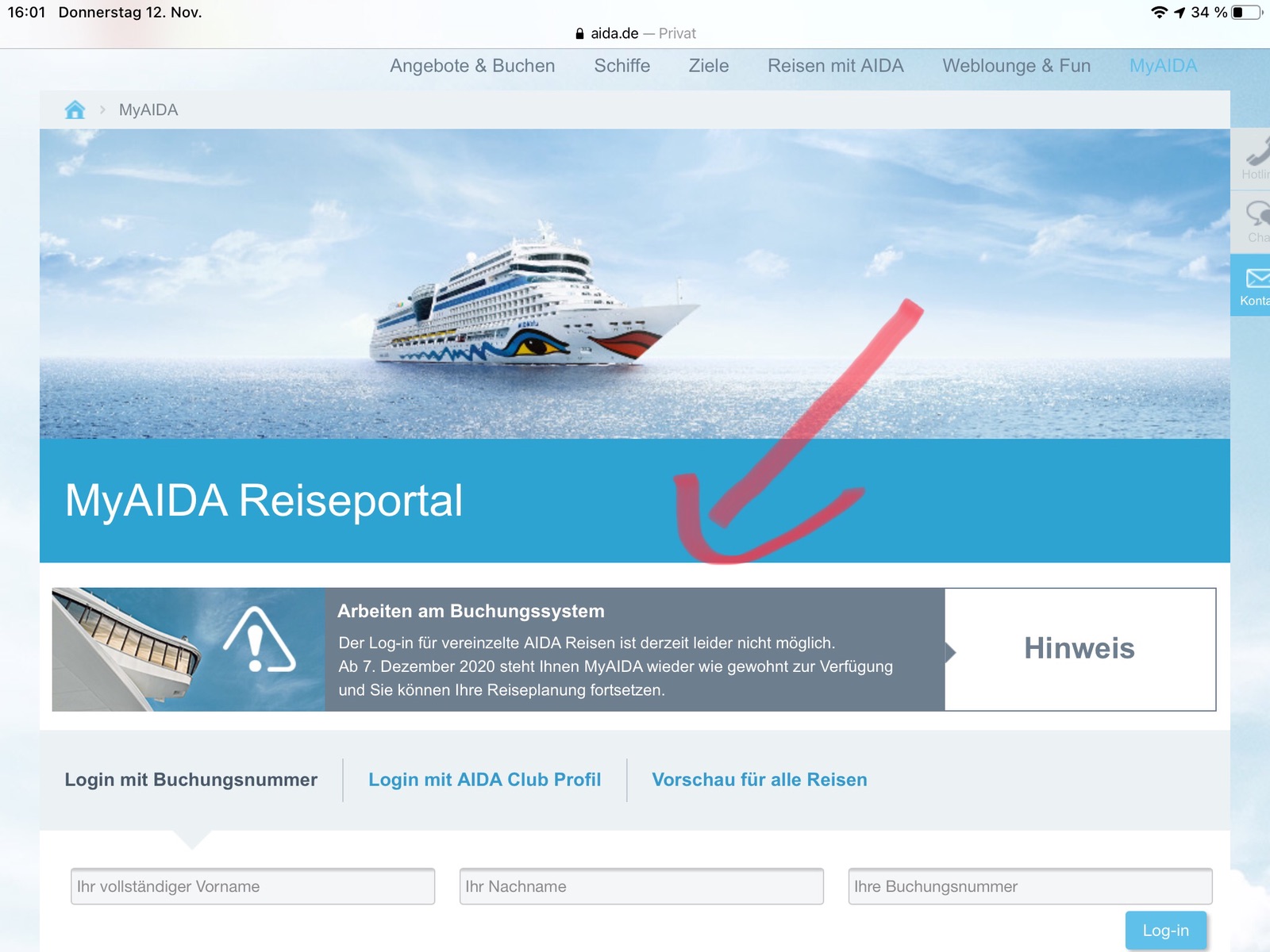 Und dann ist auch im AIDA Club keine gebuchte Reise zu finden.