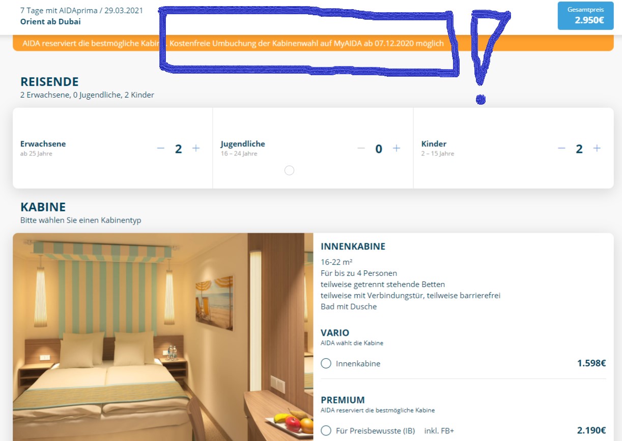 Und warum kommuniziert AIDA das nicht schon von Anfang an? Jetzt steht es auch direkt bei der Buchung: