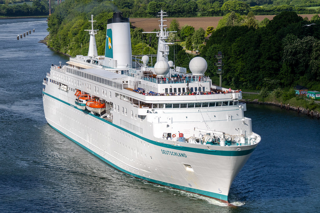 Heute morgen fuhr die MS Deutschland wieder seit langem durch den Nord-Ostsee-Kanal, hier 2 Bilder.