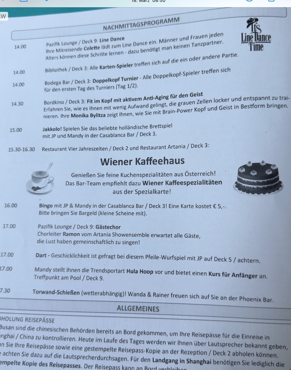 Ich habe bereits auf 3 verschiedenen Schiffen den bayrischen Frühschoppen mitgemacht, und jedes Mal war dort eine richtig gute Feierstimmung.