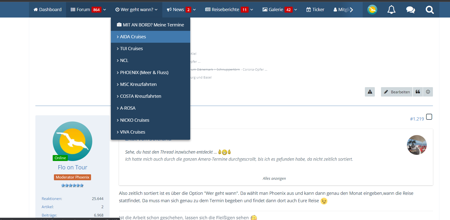 Hallo Freunde der Phoenix Reisen - Die IT hat "Wer geht wann" aktualisiert. Wir können jetzt auch unsere Reisen bis einschl. 2024 für die Hochseekreuzfahrten eintragen