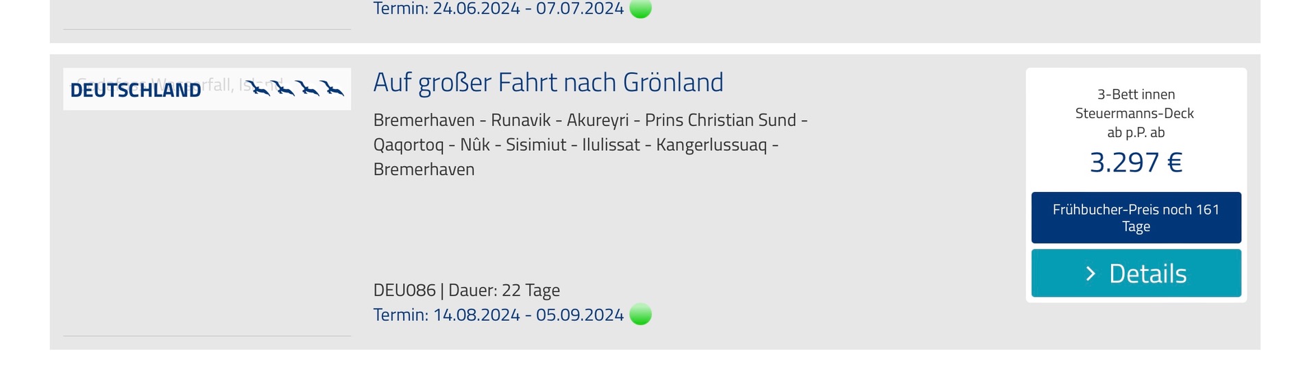 Wir haben eben die Grönlandreise im Sommer 2024 mit der Amera gebucht.