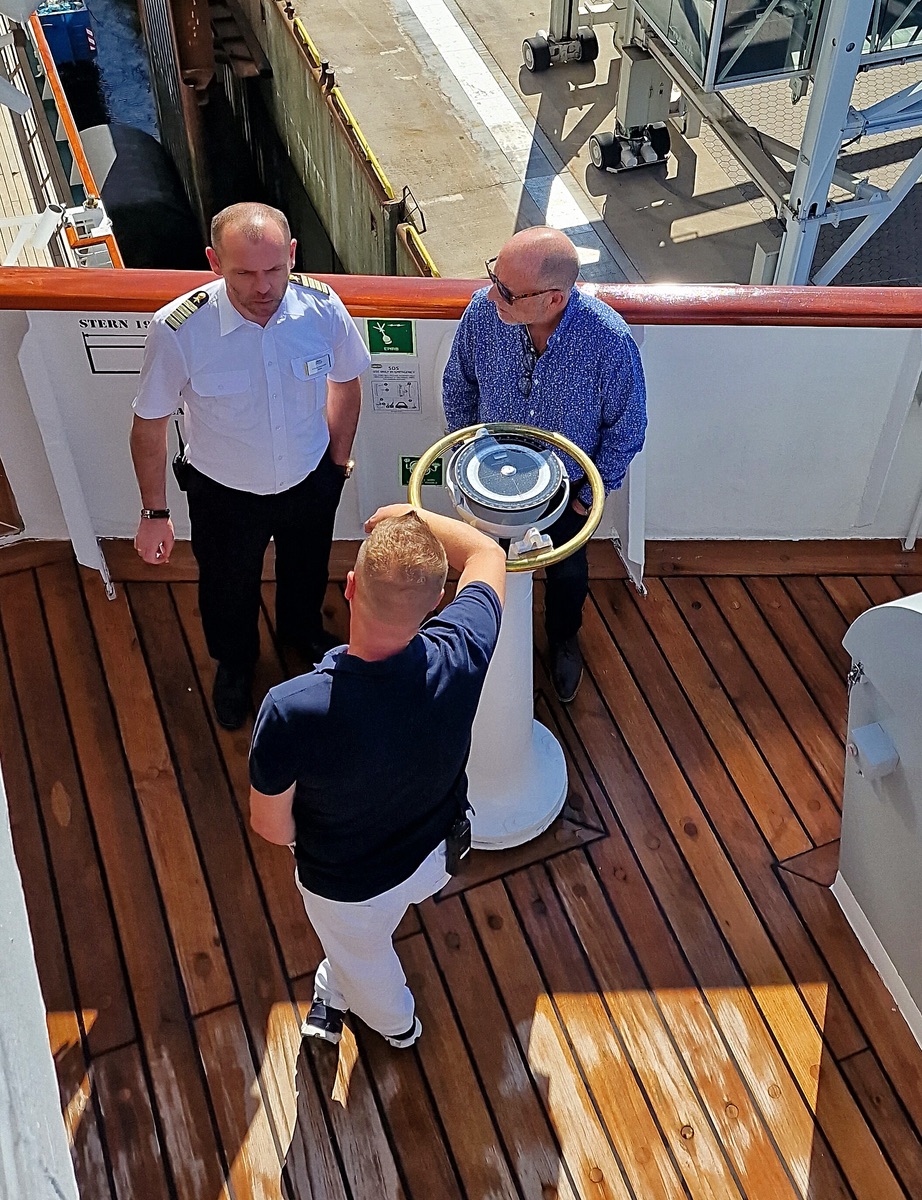 Robert Fronenbroek hat die Amadea erst am 9.9.23 von Kapitän Burkhard Müller, mit dem wir in Island und Grönland waren, in Bremerhaven übernommen.