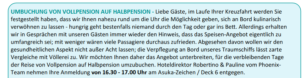 Das mit Voll- auf Halbpension würden sicher einige Gäste in Anspruch nehmen