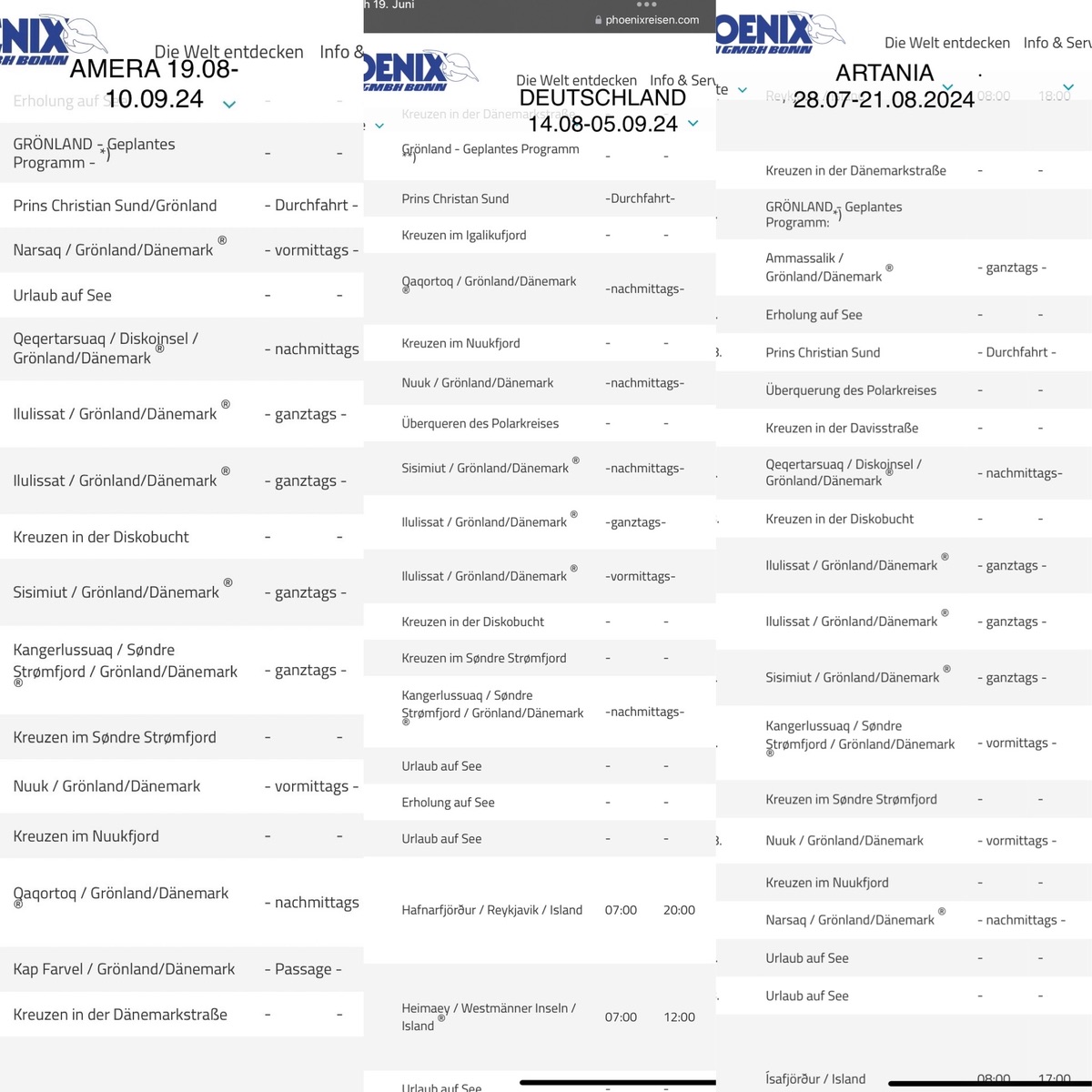 Alle Schiffe, ob Deutschland, Artania oder Amera haben in etwa die gleichen Anlaufziele in Grönland. Was verstehst du denn unter interessante Touren?